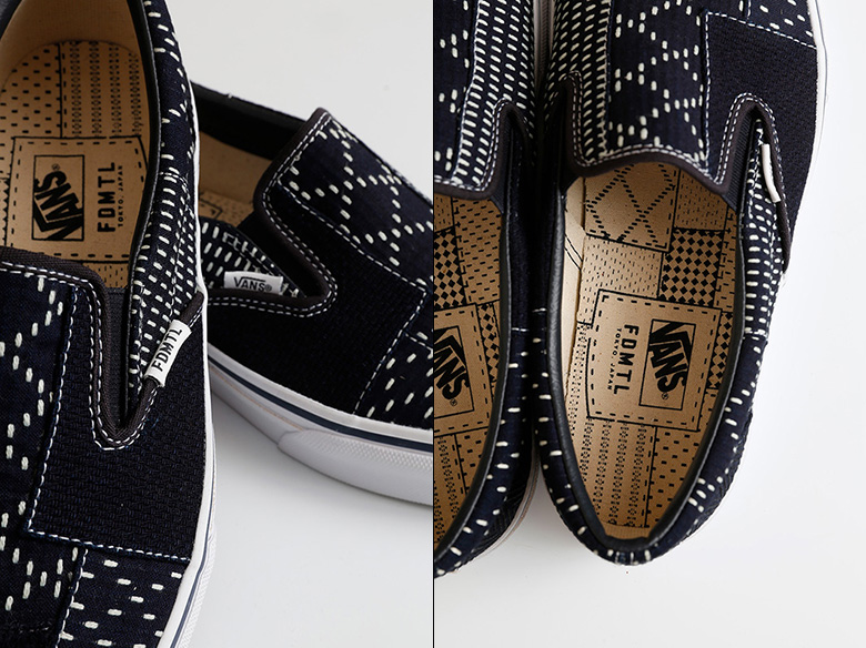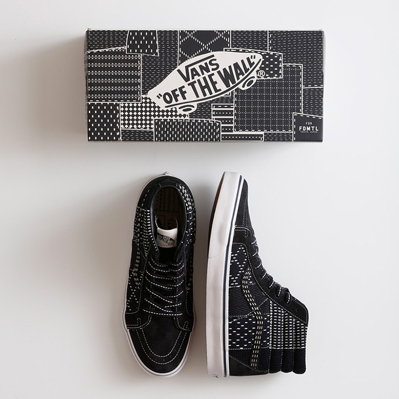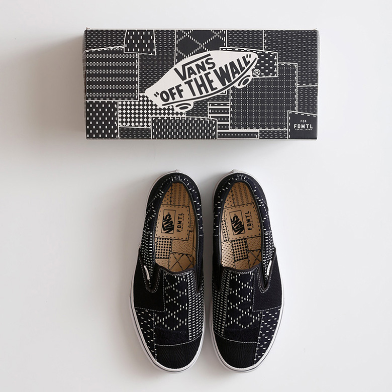Les Japonais de chez FDMTL s’étaient fait repérer l’an passé en proposant en parallèle de leur collection de vêtements deux paires de sneakers imaginées avec Vans avec un rendu et un packaging original. Fort de ce succès, les deux entités s’unissent à nouveau pour accompagner les nouvelles pièces de la collection Fall 2016 de chez FDMTL. On retrouve le même procédé appliqué la dernière fois sur ces Vans Sk8-Hi et Vans Slip-On. En effet, l’empeigne est faite de patchworks avec des toiles teintes avec de l’indigo très foncé. Ce type de rendu se retrouve d’ailleurs fréquemment sur les différents vêtements de la nouvelle collection de FDMTL. Ces deux nouvelles réalisations sont en pré-vente au Japon pour une livraison début 2017.