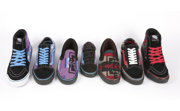 Vans et Pendleton s’associent pour créer une collection pour l’association caritative Nibwaakaawin. Deux variations sur 4 modèles ( Old Skool, Sk8-Hi, Slip-On, et la Old Skool V) sortiront en exclusivité lors de leur événement « All Nations Skate Jam 2012 ».
