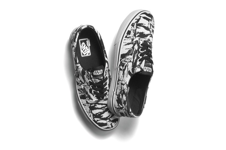 Vans continue son programme avec Star Wars avec une collection prévue pour cette fin d’année. Il y a plusieurs modèles prévus sur le thème Dark Side qui sera parfaitement de saison. Certaines sneakers sont plus « geek » que d’autres en reprenant l’univers Star Wars avec par exemple Dark Vador sur le Slip-On. On préfère les versions plus subtiles comme sur la SK8-Hi qui reprend habilement un design historique de la marque, les pirates. Il est détourné ici avec le masque des Stormtroopers. Ce sont toujours des boites spécifiques qui ont été créées par Vans pour cette collection. Vous pourrez d’ailleurs retrouver celle de l’été sur notre e-shop.