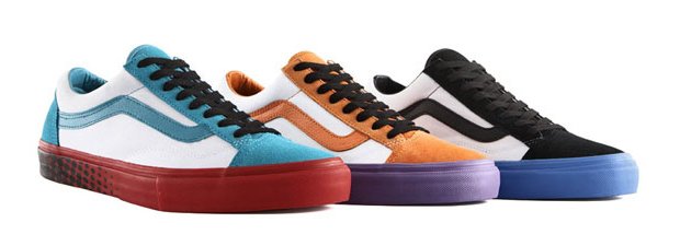 Supreme édite cinq paires de Vans Old Skool avec un schéma bicolore (sauf pour la toute noire). Ces Vans Old Skool sont en cuir suédé et mesh.