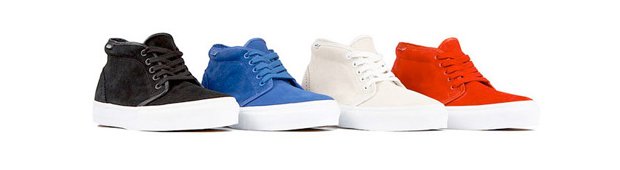 Supreme sort cinq paires de Vans Chukka monochromes. Un design de damiers revient sur chaque paire sur une languette au talon et la semelle intérieure.