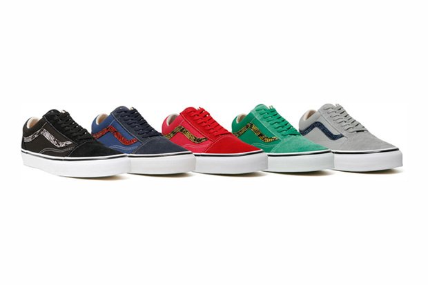 Supreme sort un « Snakeskin Pack » comprenant cinq paires de Vans Chukka et cinq paires de Vans Old Skool. Les déclinaisons fonctionnent toute de la même manière, deux couleurs sur du cuir suédé et du snake skin.