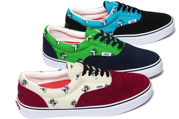 Supreme réédite un vieux design Vans sur deux modèles de la marque : la Vans Era et la Vans SK8-Hi.